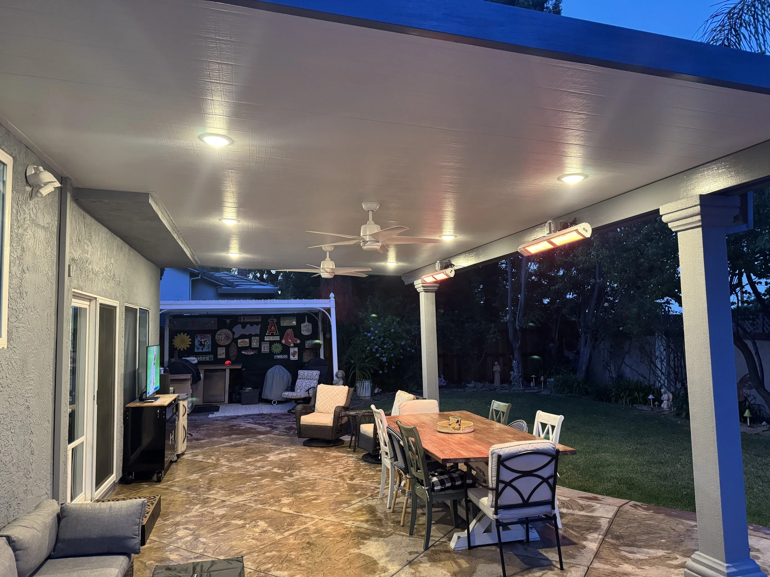 Imagine a backyard where the fun doesn’t stop the moment the rain begins. With a thoughtfully designed patio cover, you can enjoy your outdoor space year-round, protected from the elements without sacrificing style or comfort. Our expertly installed covers allow gatherings to continue seamlessly, whether it's a light drizzle or a steady shower. To enhance this experience, we can integrate outdoor heaters beneath your patio cover, ensuring warmth and coziness even on chilly evenings. This is more than just a backyard; it’s an elegant extension of your home where every season invites relaxation and entertainment.